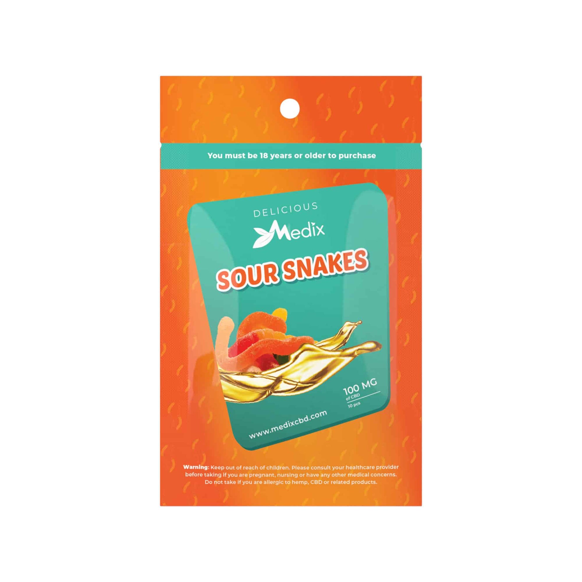 Our delicious CBD gummy worms (sour snakes) are infused with premium quality Phyto-cannabinoid-rich (PCR) hemp oil. Medix CBD sour snakes are coated in sweet and sour sugar crystals sure to satisfy any sour-loving taste buds. Each sour snake is multicolored, soft, and chewy. These CBD gummies are made in America and carefully formulated for the ultimate CBD experience with every bite.